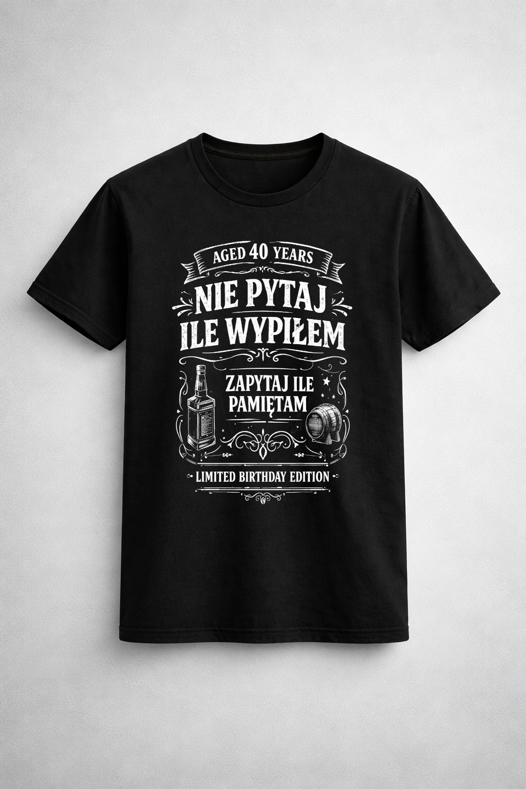 Koszulka na 40 urodziny „Nie pytaj ile wypiłem – zapytaj ile pamiętam”